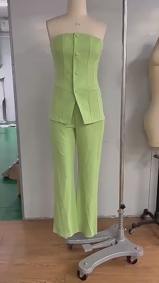 Women's Tube Top Suit Fashion Button Sleeveless Top And Straight Trousers Set