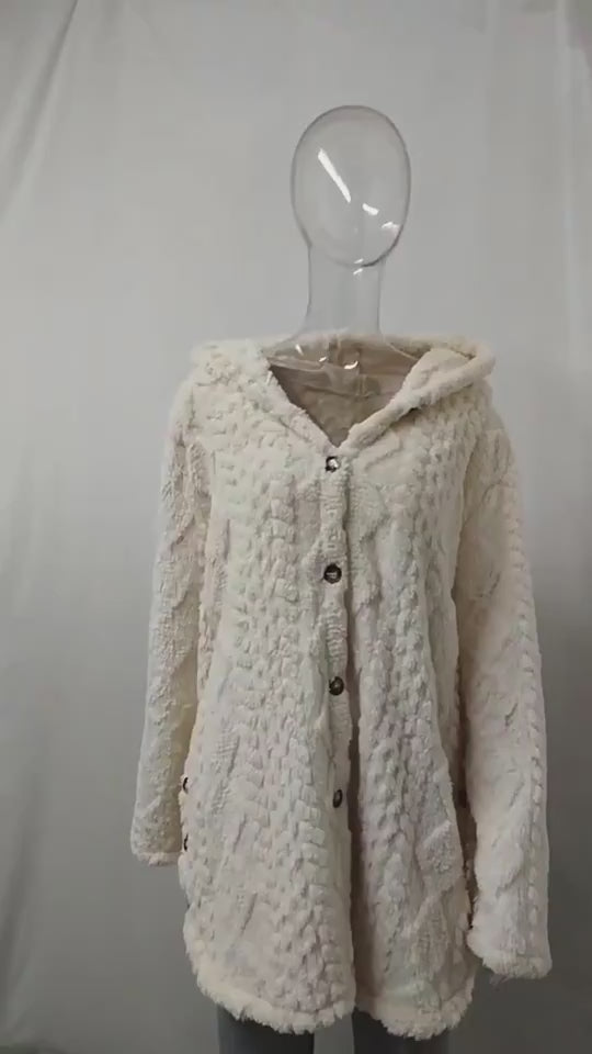 Hooded Cardigan Button Long Jacket Winter Solid Color Long Sleeve Coat