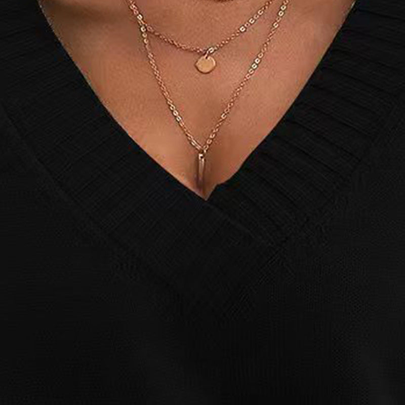 The classic V-neckline adds a touch of elegance and makes it easy to accessorize with your favorite necklaces. Whether you're heading to work, meeting friends for coffee, or enjoying a casual weekend outing, this versatile sweater will quickly become your go-to top for the season. Its timeless design and comfortable fit make it a must-have addition to your autumn wardrobe.